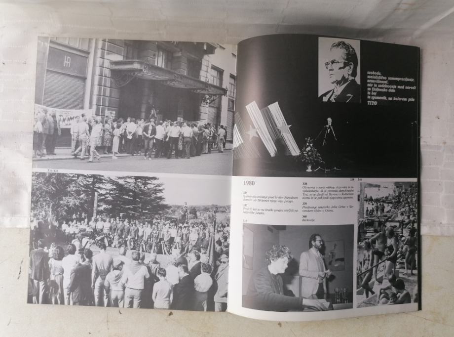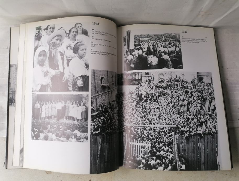 Na voljo je lepo ohranjena knjiga Trst v črno belem 1945-1980 v slovenskem jeziku.