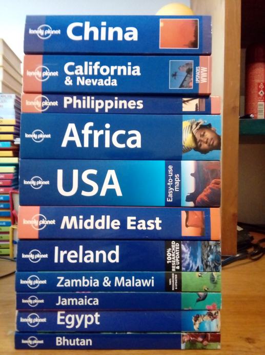Prodam turistične vodnike (v angleščini) Lonely planet: Bhutan (2007), Zambia and Malawi (2010), Ireland (2010), Middle East (2003), Africa (2007), Philippines (2003), California and Nevada (2000).