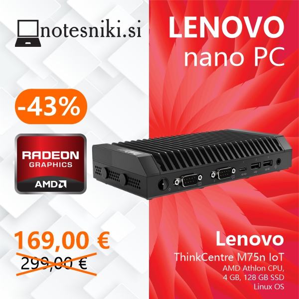 Mini računalnik Lenovo je neslišen in pride z prednameščenim operacijskim sistemom LINUX. Možna je tudi nadgradnja na Microsoft Windows OS. Izjemno sodelovanje med podjetjema AMD in Lenovo nam je prineslo veliko različnih zanimivih in cenovno dostopnih izdelkov! Tale je namenjen industriji ali namenski rabi!