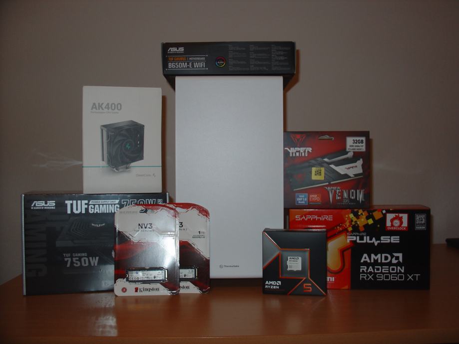 Prodam popolnoma nov, originalno zapakiran, visoko zmogljiv Gaming računalnik z izbranimi vrhunskimi komponentami. Priloženi so računi in večletna garancija na posamezne komponente. Grafična kartica Sapphire Pulse RX 9060 XT je različica s 16GB GDDR6 spomina in se uvršča med trenutno najboljše "price/performance" kartice v tem cenovnem razredu.