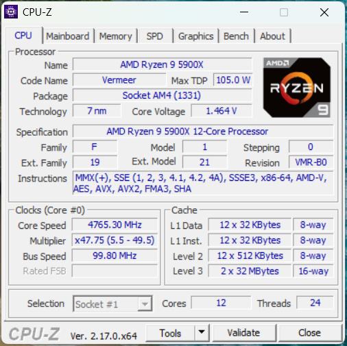 - cpu: AMD Ryzen 9 5900X 12C/24T 3.7/4.8GHz
