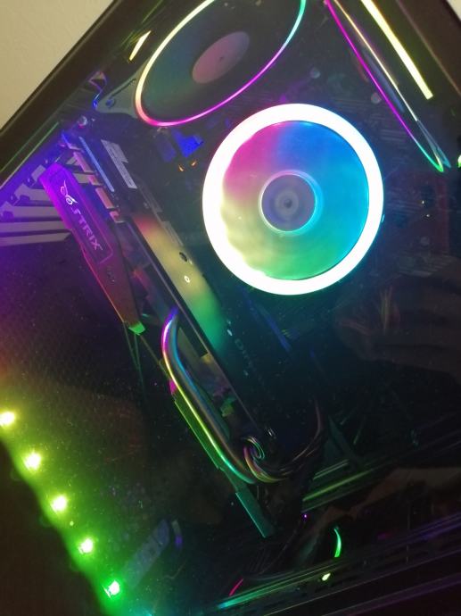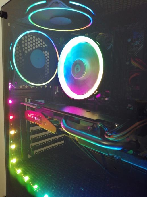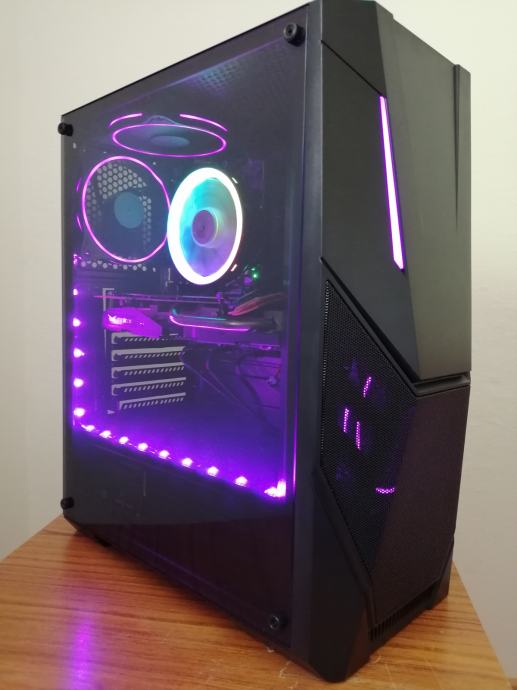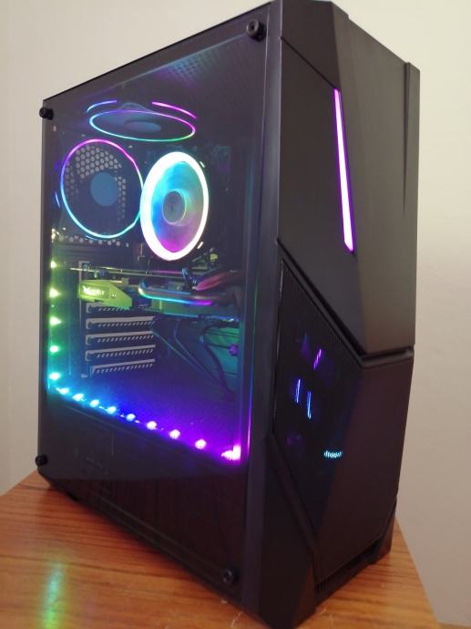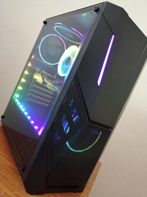 RGB Gaming ohišje z 3 sistemskimi ventilatorji za odlično hlajenje in kroženje zraka. Barve se prestavljajo poljubno po želji z gumbom na ohišju.