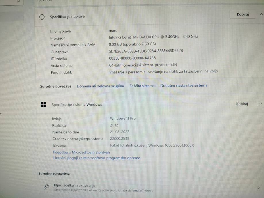 Prodam računalnik: procesor Intel Core i3 4130, 8gb rama in 1gb disk, 120 gb ssd z win 11, office 2021,