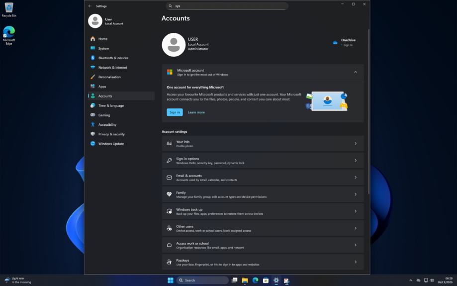 - na novo naloženi windowsi local/offline način (brez microsoft računa)