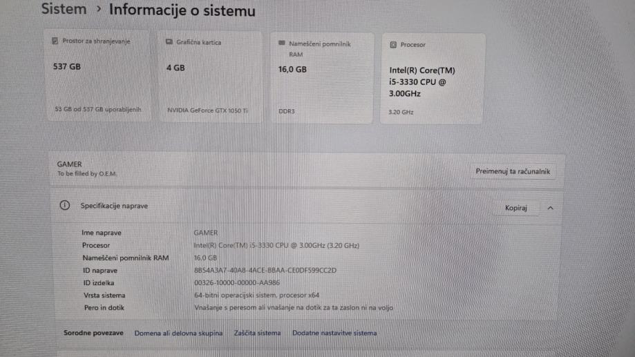 Namizi računalnik Gigabyte i5 CPU/16GB RAM/NVIDIA GeForce GTX 1050 Ti