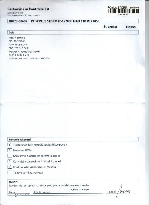 Računalnik je odličen in zelo zmogljiv. Imam original embalažo in račun vso dokumentacijo. Ta računalnik je bil brez sistema kupljen in ga po želji lahko naložim win 11 pro z veljavno kupljeno licenco. Samo osebni prevzem.Na računalniku še folija od novega.