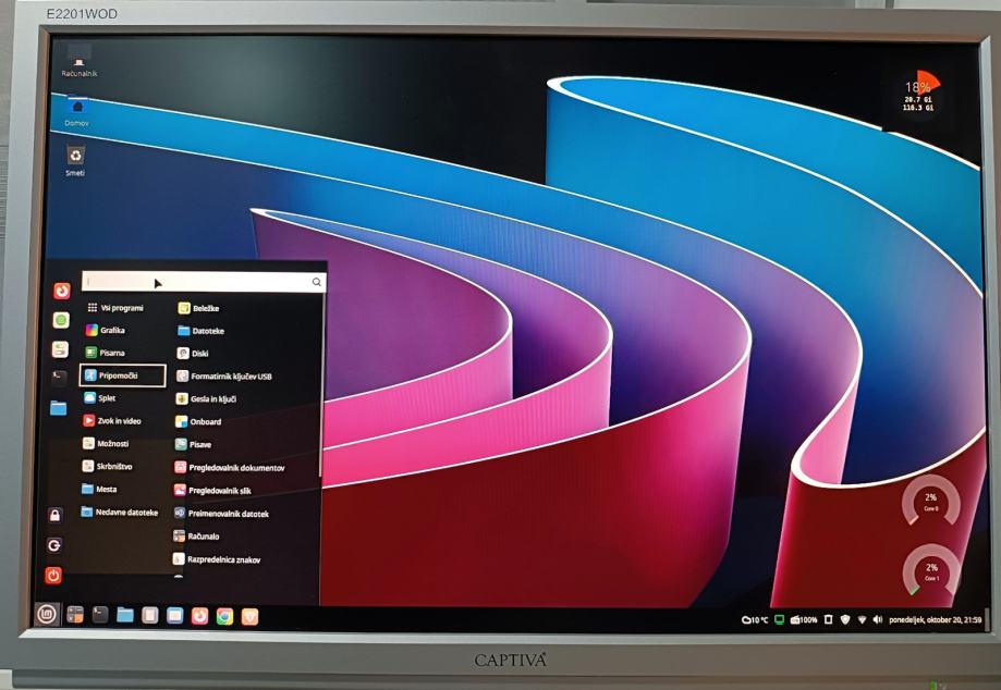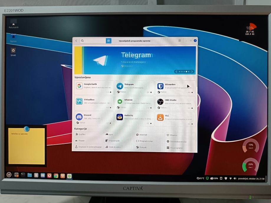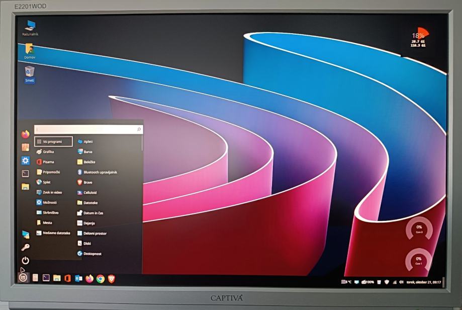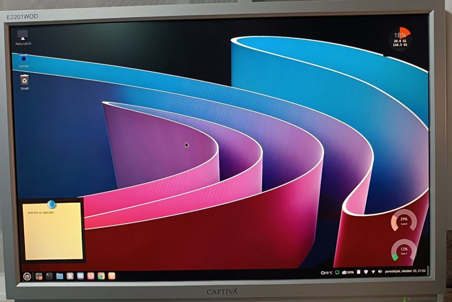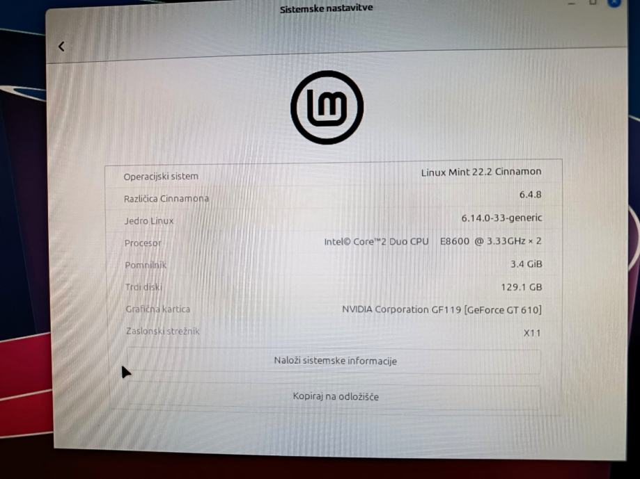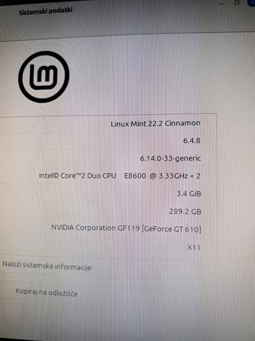 Prodam namizni računalnik z procesorjem Intel E8600, Grafično kartico GeForce GT610, Ram 4Gb, ssd disk 128Gb+HDD 160Gb, DVD-RW enota, zmogljiv usmernik 650W, naložen Linux Mint Cinnamon 22.2