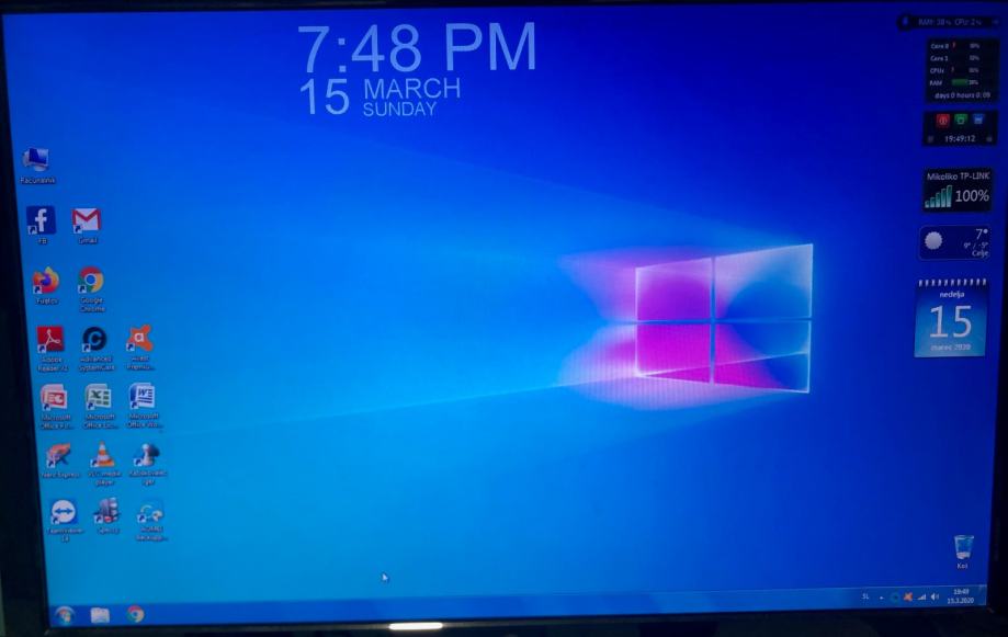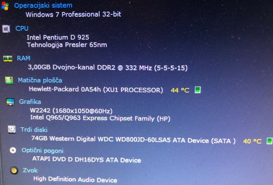 Računalnik je očiščen in ima nameščen Win, Office in ostale programe potrebne za nemoteno delo.