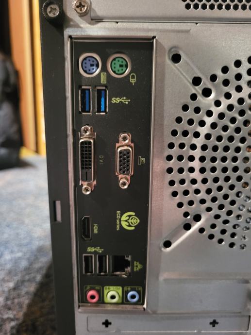 Porti zadaj: 4x USB (2x USB 3.0 in 2x USB 2.0), VGA, DVI, HDMI, Gbit LAN, audio