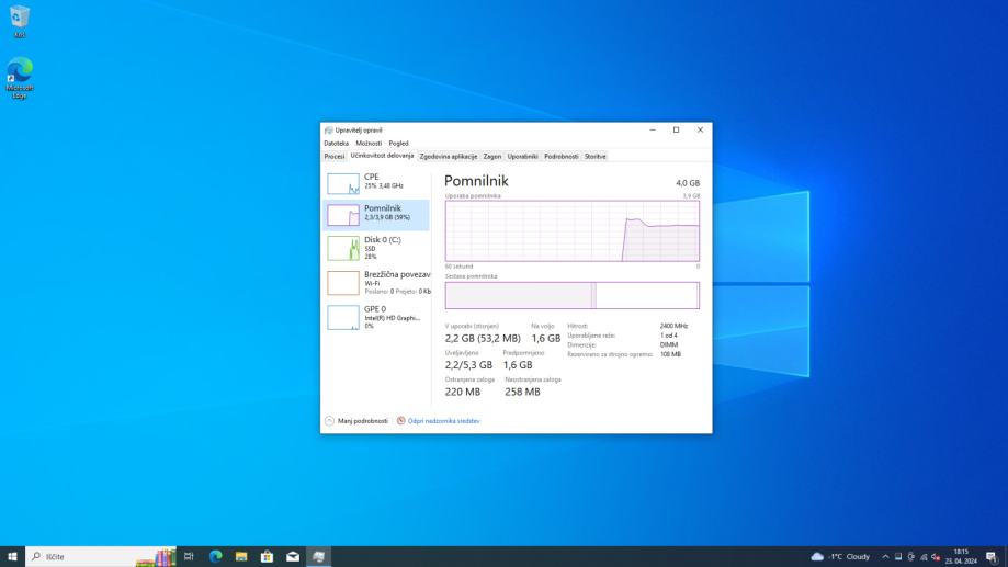 RAM: 1x 4GB DDR4 @ 2.400 Mhz (3 sloti prosti)