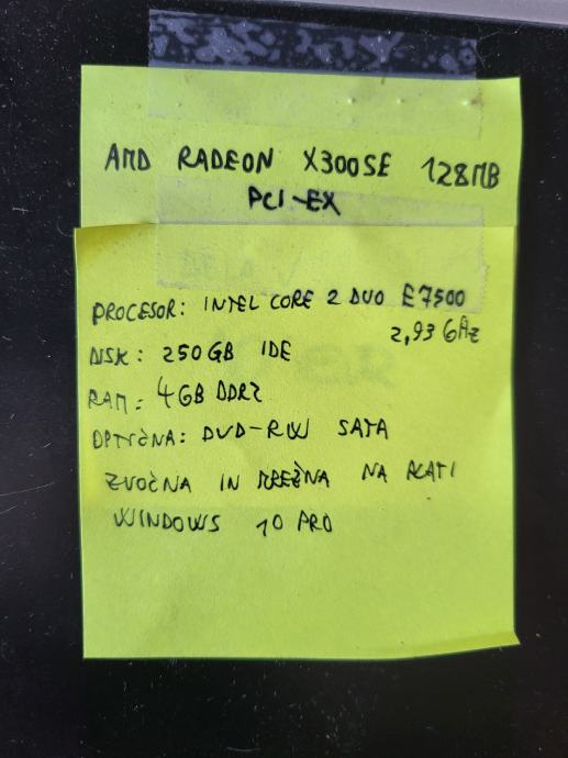 Procesor intel core 2 duo e7500 2,93ghz, disk 250gb, ram 4gb, opticna enota dvd-rw sata , zvočna in mrežna na matični, nalozenonwin 10pro