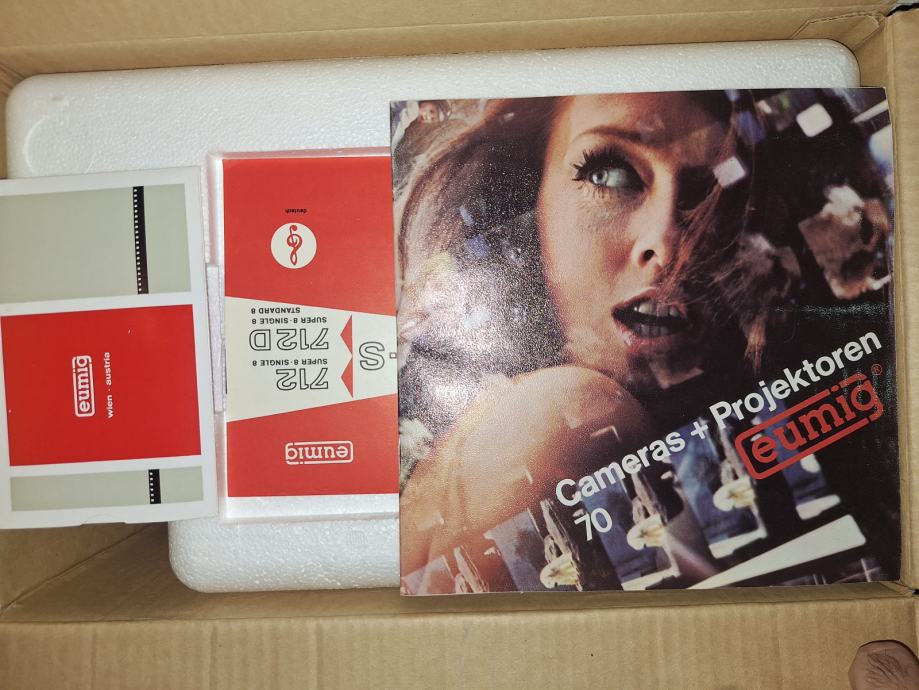 Prodam filmski projektor Eumig Mark-S 712 Super 8. Projektor je bil originalno zapakiran, škatlo sem odprl zgolj zaradi fotografiranja za oglas.