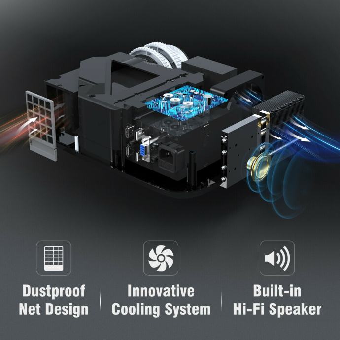 *Ventilator preprečuje pregrevanje projektorja brez glasnih motenj med gledanjem filma.