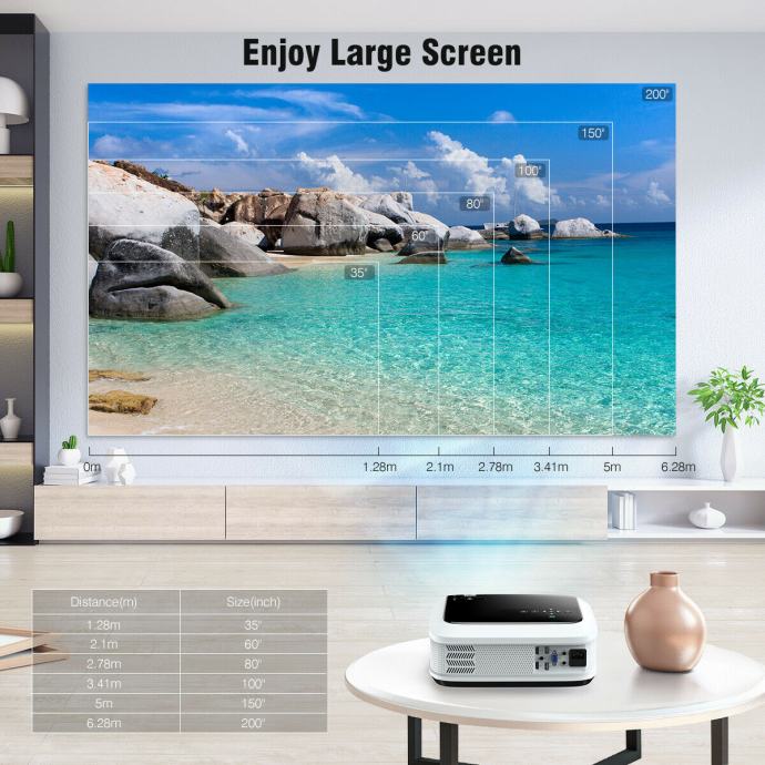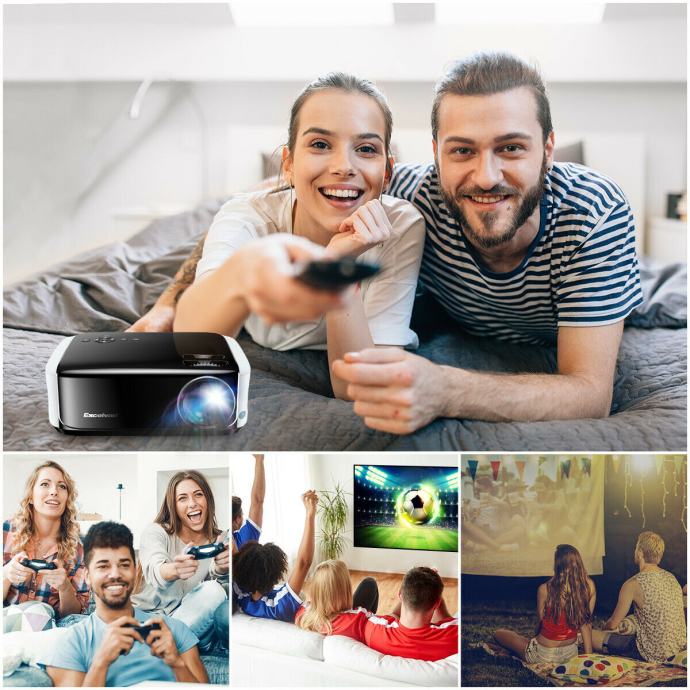 1. POPOLN DOMAČI KINO: podpira 1080P ločljivost in ima najnovejšo tehnologijo LCD, ki zagotavlja visoko kakovostne slike. LED žarnica s svetlostjo kar 4000 lumnov je kot nalašč za prijetne večere in dneve.