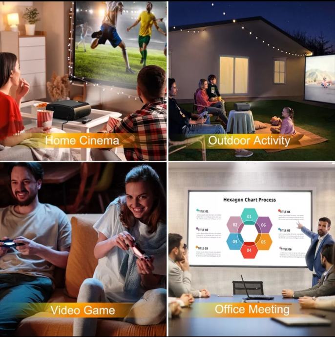 Projektor je kot nalašč za ogled najljubših filmskih vsebin v udobju lastnega doma. Popestril bo prijetne poletne večere na terasi ali vrtu, v zimskih dneh pa boste lahko brez, da bi zapustili topel dom imeli privatni kino kar doma.