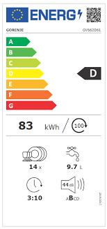 Gorenje popolnoma vgradni pomivalni stroj GV662D61 z možnostjo prejema do 14 pogrinjkov se uvršča v energijski razred D. Ponaša se s tehnologijo TotalDry in avtomatskim odpiranjem vrat.