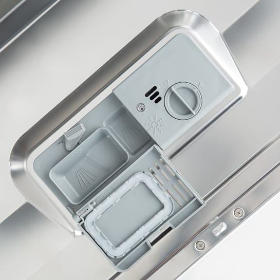 Vse programe lahko nastavite hitro in preprosto na pregledni krmilni plošči, ki se nahaja neposredno na pomivalnem stroju. Vse tipke so označene s smiselnimi simboli. Kontrolne lučke vas bodo obveščale o izbranem programu, ravni čistilnega sredstva ali soli. Na LED-zaslonu se bo odšteval čas do konca posameznega programa.