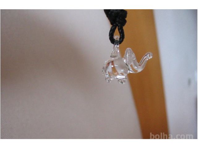 Nova modna unikatna verižica in prstan s slončkom iz stekla naprodaj.