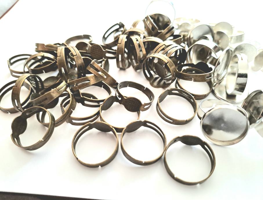 Okoli 50 različnih osnov za izdelovanje prstanov, večina bronza.