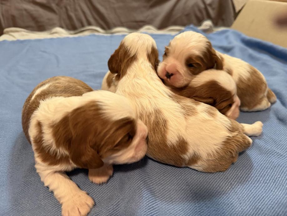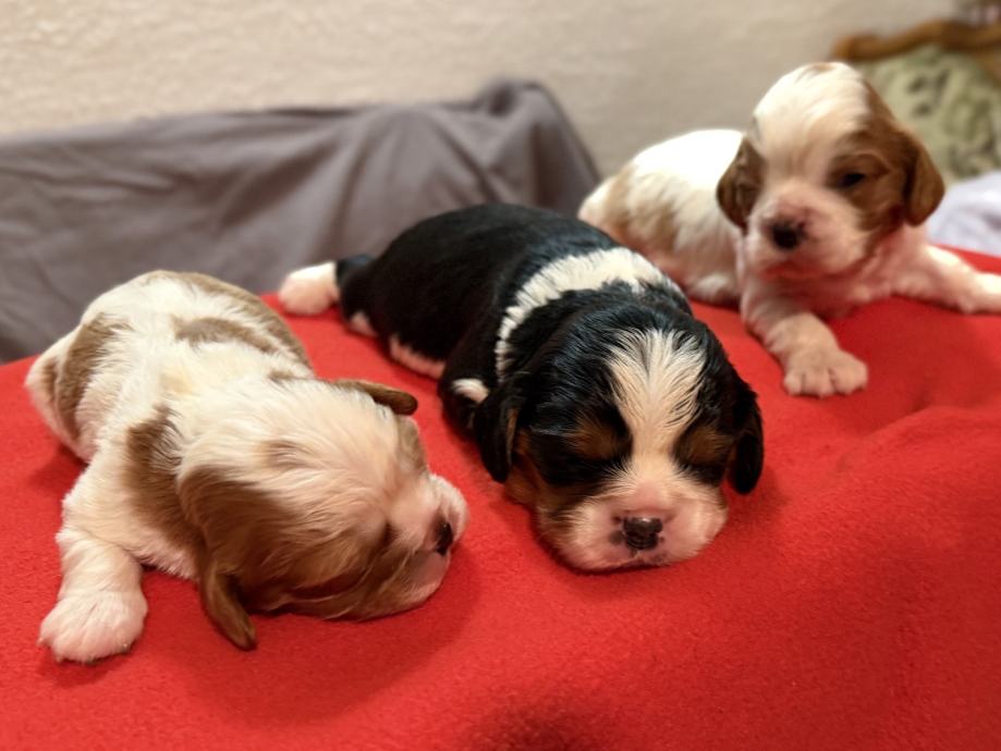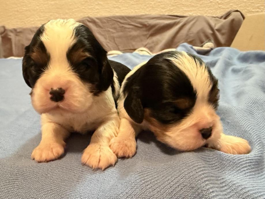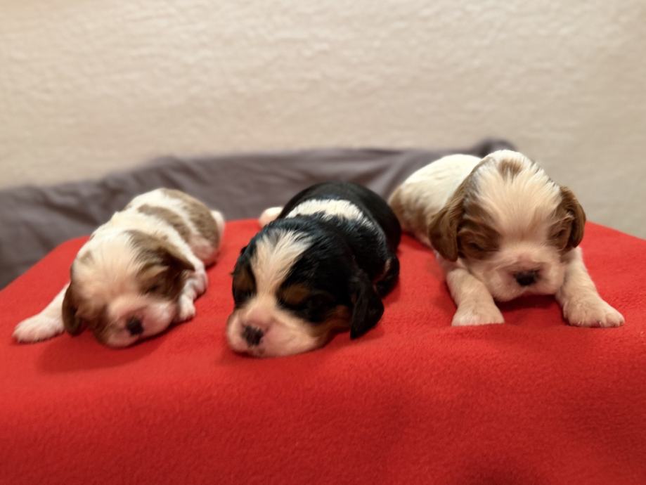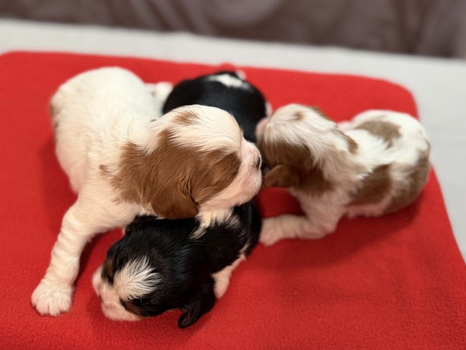Sprejemamo rezervacije za naše Kavalircke,na voljo so samičke in samčki v trikolor in blenhaim barvi.Za odajo bodo po 1.2.ko bodo cepleni,čipirani,veterinarsko pregledani...Oba starša imamo doma.Oče blenhaim,mamica trikolor.Za več informacij prosim pokličite.