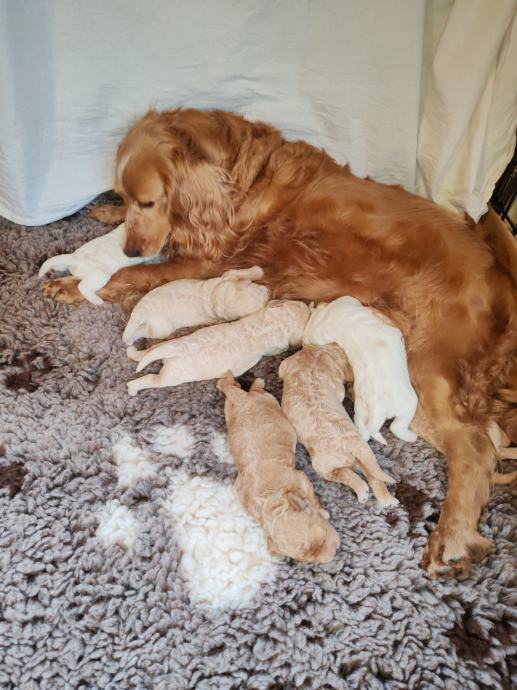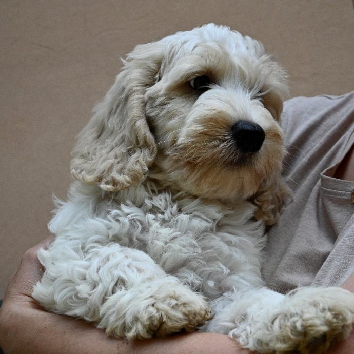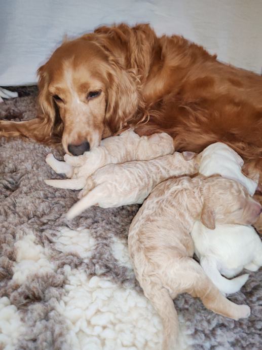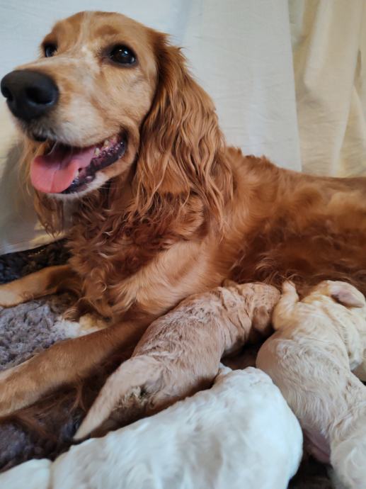Skotilo se nam je prelepo leglo cockapoojev F2b kombinacije med cockapoojem in pudljem. So v kremni , rjavi, beli ter beli barvi z svetlo rjavimi lisami. Mamica je rjava, kratkodlaki cockapoo F2, iz moje vzreje, z certifikatom iz USA, očka bel pudelj, srednji. Sta oba PRA CLEAR ter pregledane imata pogačice in kolke. Skratka zdrava sta oba ter oba živita pri nas doma. Dlaka jim ne bo izpadala ter so primerni tudi za alergike. Cockapoo ni uradno priznana pasma po FCI standardu in nimajo rodovnika nikjer v svetu. Je pa načrtna mešanica dveh pasem in je genetika znana. Ogledi bodo možni od 15.1. 2026 dalje. Za ogled se je potrebno dogovoriti . Ob starosti 8 tednov lahko gredo v novi dom, to bi bilo 15.2.2926. Mladički dobijo evropski potni list, mikročip, so redno razgliščeni ter zavedeni v slo.register psov. Za vse, ki bi vas zanimalo kaj več, pa bi prosila, da nas pokličete na 070 644 376, Simona. Slike so vse naše . Vabljeni! Prosimo, da kličete samo resni.