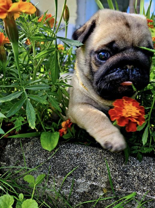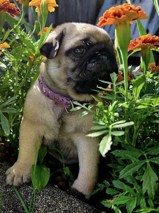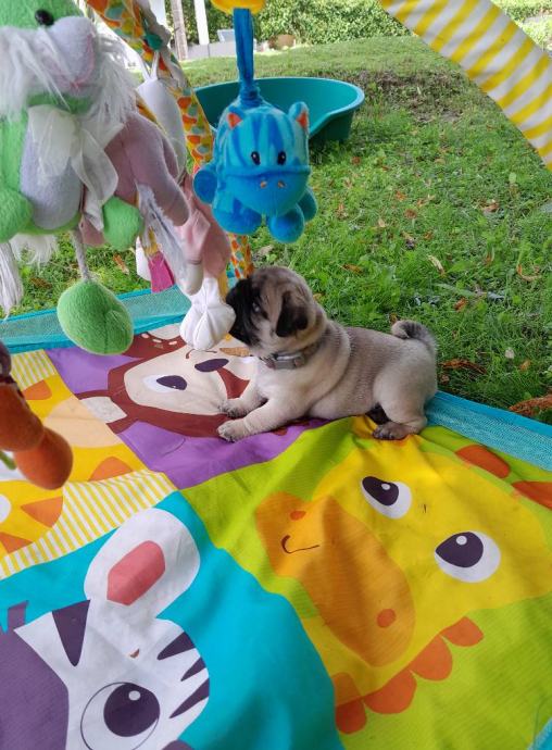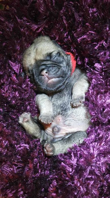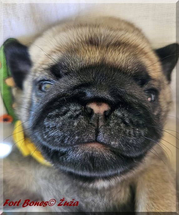 Desetmesecna mopsolina je pripravljena za odhod v novi dom. Žuža isce primerne skrbnike, ki bodo skrbeli zanjo v skladu s pasemskimi potrebami in jo imeli radi kot druzinskega clana naslednjih petnajst let. Samicka z velikim razstavnim in vzrejnim potencialom ter talentom za polezavanje na kavcu. Primerna tudi za solanje saj je visoko motivirana za pasje sporte. Poleg lepote jo odlikujeta inteligenca in hiperaktivnost. Rada se crklja in deli poljubcke. Zelo je radoziva in raziskovalna. Obozuje plisaste igracke, druzbo in voznjo z avtomobilom. Obvlada osnove obnasanja, je socializirana in vajena zivljenja v stanovanju ter sobno cista, ce upostevate njeno biolosko uro. Vajena zivljenja v stanovanju z drugimi tudi vecjimi psi. S seboj bo prinesela urejeno kinolosko in veterinarsko dokumentacijo, racun in pogodbo z zdravstveno garancijo kakor tudi osnovno opremo in hrano za prvi mesec zivljenja v novem domu. Ter dozivljensko moralno podporo vzreditelja. Pred odhodom v novi dom je obvezno spoznavno srecanje kakor tudi preverba doma.