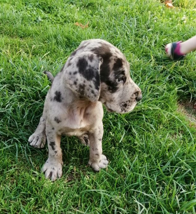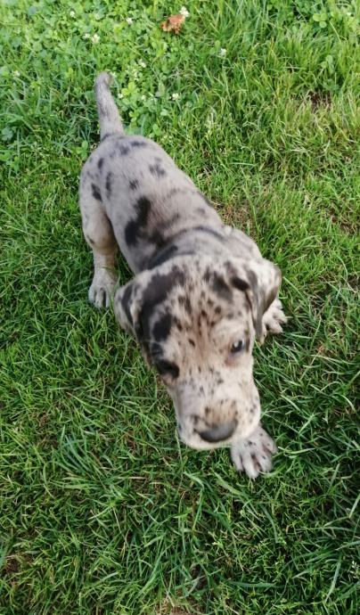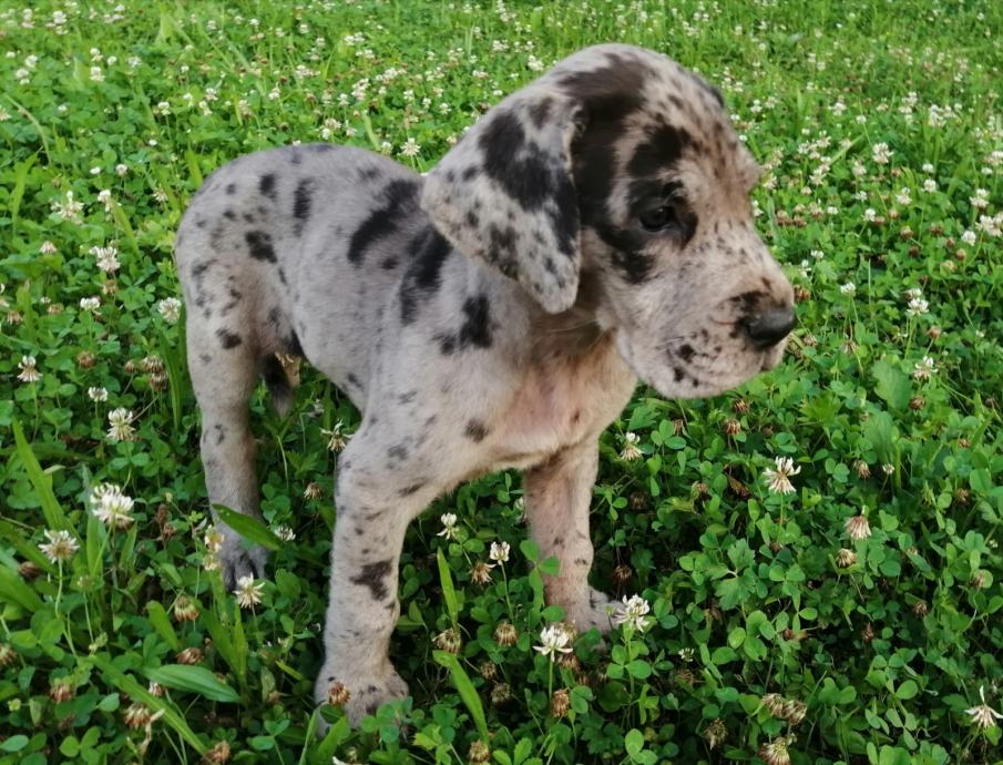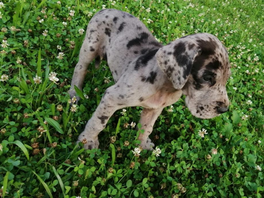 Nemška doga merle boje! Samička na slikaj, jako močna.