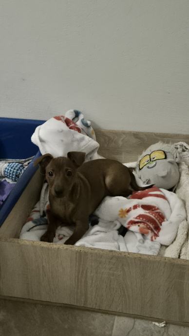 Samička pritlikavi pinč rjave barve 3 mesece stara na voljo cepljena redno in cipirana ..samo resni vse info po telefonu..