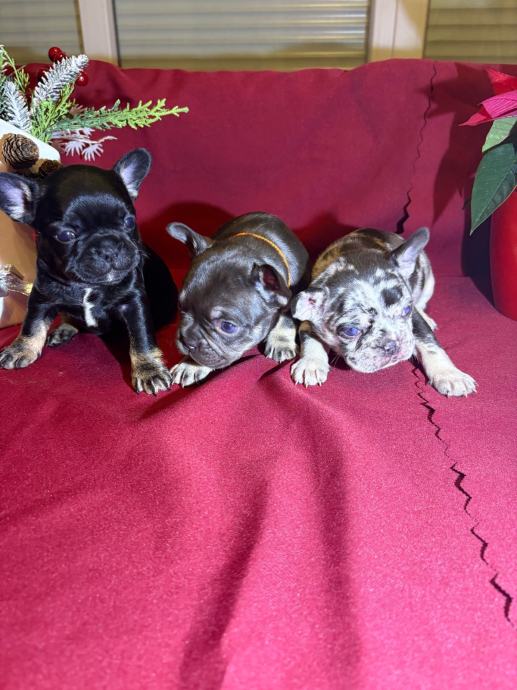 Štenci francuskog buldoga, oštenjeni 24.11., veselo, zdravo i razigrano leglo . U ponudi su 3 ženke i 3 mužjaka. Rastu u kućnom okruženju, naučeni na ljude, djecu i druge pse. Razigrani i preslatki.