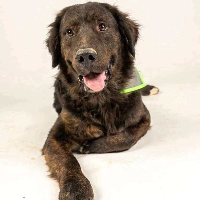 Še vedno je dojenček, velik-majhen dojenček. Dopolnil je eno leto, tehta več kot 30 kg in je definitivno najbolj poseben pes po značaju, ki ga imamo v društvu. Po groznem začetku življenja, ko so ga pretepali in preganjali, kamorkoli je v dobri veri in upanju, da bi dobil kaj za potešitev praznega želodčka, prišel, ter po brazgotini, ki mu je ostala kot spomin na udarec z desko, ga je zdaj končno dosegla varnost. Zdaj ima veliko prijateljev za igro, dobro hrano, veterinarsko oskrbo, kot jo potrebuje, predvsem pa ogromno ljubezni in pozornosti. Vseeno pa tega ne bi rad delil s preveč drugimi psi – rad bi imel svojega človeka.