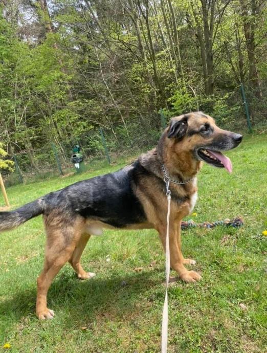 Zelo cartljiv in prijazen samec večje rasti, tehta okoli 35kg. Je sobno čist, potrebo opravlja le na sprehodu. Je poslušen, prilagodljiv, cartljiv in prijazen do neba! V zavetišču ima posebno prehrano in sicer surovo. Rojen: 31. 05. 2016. Spol: moški. Sprejem v zavetišče: 16. 11. 2023.