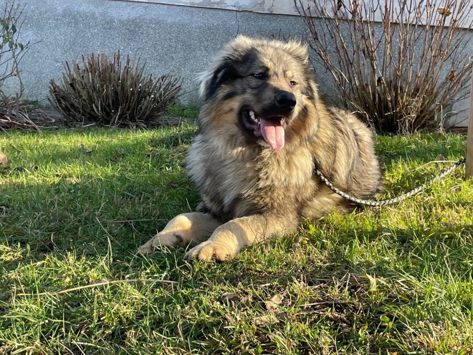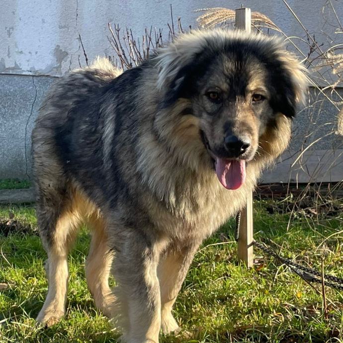 Je lepa gorska mešanica, ki ji iz žil odtekajo šarplaninska kri in zato išče rejnike, kar bi bilo popularno rečeno, če bi v življenju pojedli malo več polente. :) Pogumen je, močan in vzvišen po videzu, neodvisen, miren v okolju, na katerega se navadi. Trenutno biva pri samcu, mladem, igrivem večjem psu in zelo dobro razumeta in se igrata. Srečal je mačke, ki se niso premikale in so bile mirno v zaprtih prostorih, zunaj pa, ko jih je opazil, je bil preveč zainteresiran in ne bi bil dobra izbira za gospodinjstvo z mačkami. Rad se igra in crklja z ljudmi, na svoj močnejši način... hej, pa vendar je to Sharplaninski fant. :) Ne zaveda se svoje moči in velikosti, zato ga je treba umiriti, ne vznemiriti. Zna hoditi po povodcu in je pripravljen na dolge sprehode v naravi, igranje in skrb za svojo bodočo družino.
