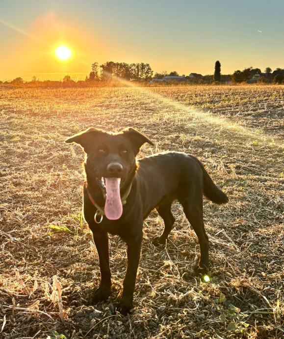 Mio je mlad samec, mešanec labradorca, rojen 14. marca 2025, po besedah veterinarja. Tehta 28,5 kg in je visok 58 cm v plečah. Kot večina psov v oglasu je bil najden zapuščenega v bližini Vinkovcev, skupaj z dvema drugima mladičkoma iz njegovega legla. Rešena sta bila povsem po naključju, ko ju je srečala oseba z velikim in empatičnim srcem in se odločila, da ju vzame s seboj. Ta odločitev je zanju pomenila življenje in možnost za dober dom! Čeprav nista v domu (naučiti ju bo treba hišnih pravil), imata suh, zaščiten prostor za počitek, poleg tega pa se lahko sprehajata v naravi, kadar koli jima rešitelj lahko posveti čas in pozornost. Zato je Mio navajen vožnje v avtu, hoje na povodcu in teka s kolesom. Kot vsi zdravi mladi psi je živahen, igriv, zelo ga zanima žogica, aktiven in poln energije, željan učenja nečesa novega ter obožuje dolge sprehode in teke. Je prijazen, rad se približa ljudem, željan dotika in božanja. Navajen je drugih psov, majhnih ali velikih, obeh spolov. Mačk ni navajen in bi verjetno tekel za njimi. Skratka, Mio je zelo, zelo aktiven pes in posvojitelji bi morali biti pripravljeni na delo z njim. Še vedno je mlad in pripravljen na učenje, obožuje dolge sprehode in tek.