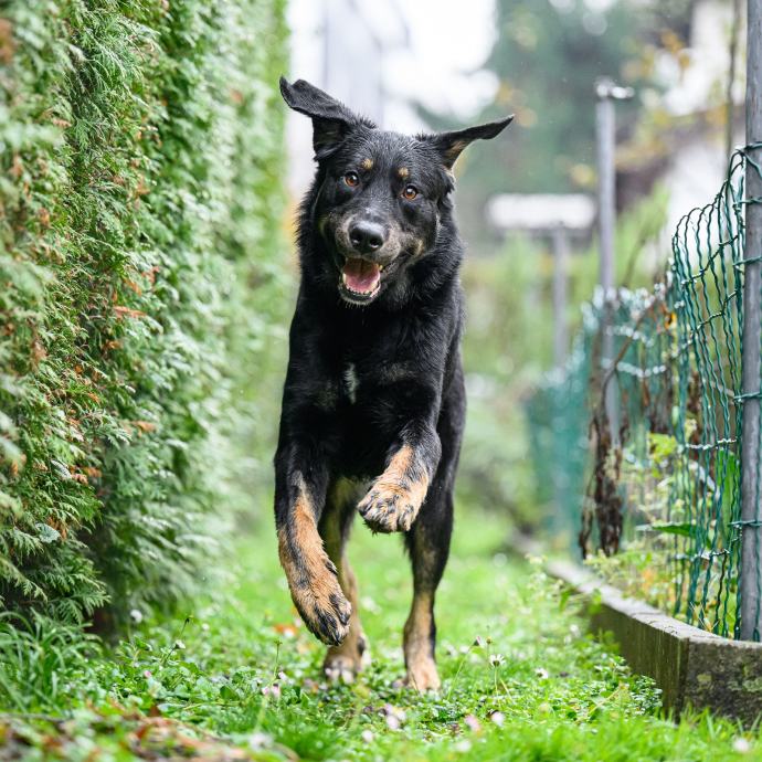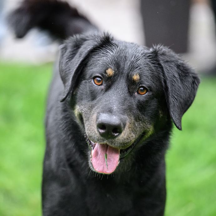 Ron je star 2 leti, večje rasti (cca 28 kg). Doslej je živel na verigi. Ni bil trpinčen, nihče pa se ni z njim ukvarjal. Je zelo učljiv, za žogico bi še dušo prodal. Življenje v mestu mu ne predstavlja nobenega problema, srečuje druge pse, do katerih je izjemno prijateljski.