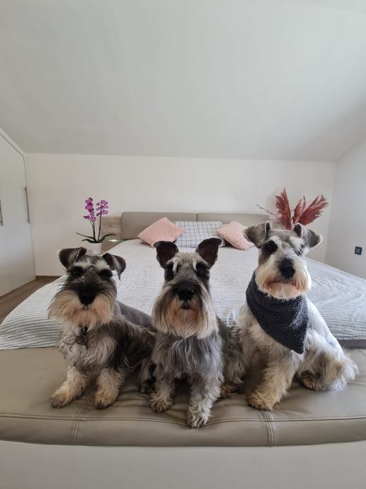 Kužki so čipirani cepljeni razgliščeni pregledani z strani veterinarja ki imajo doma mini šnavcerja.