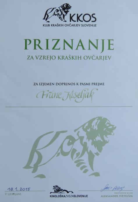 V psarni Srednjedravski so se skotili čistokrvni pasemski mladiči Kraški ovčarji, edini Slovenski avtohtoni mednarodno priznani psi. Vzreja Srednjedravska je edina vzreja pasme, ki z lastno plemensko, rodovno vzrejno linijo pete generacije potomk svojih psic ohranja in vzreja tipične prepoznavne predstavnike pasme, saj že 30 let sodi v sam vrh pri vzreji Kraških ovčarjev. Pri izbiri plemenjakov dosledno sledimo usmeritvam državne vzrejne komisije. Veliko pozornosti posvečamo socializaciji, vzgoji, veterinarski oskrbi, prehrani mladičev in pripravi na nove domove. Na tak način zagotavljamo transparentnost, varnost in preglednost nabave mladičev novim lastnikom. Vse dosedanje naše psice so bile večkratne šampionke v lepoti, nobena od njih ni nikoli potrebovala veterinarske oskrbe. Vse so dočakale trinajst let in več, kar je nadpovprečna starost za pasmo. Naslednji mesec 12. 6. bo stric od Pine mame mladičev Ch. Hil Srednjedravski praznoval častitljivi 15. rojstni dan. Mati mladičev Gr. Ch. Pina Srednjedravska je odlična psica v vseh pogledih. Ima odličen eksterier kakor tudi značaj. Je zelo ljubeča in dostopna do otrok kakor tudi do odraslih.. Na domačem dvorišču pa je zanesljiva čuvajka. Ima odlično A1 vzrejno dovoljenje ter opravljen DNA test krvi. Bila je prisotna na skoraj vseh državnih kakor tudi mednarodnih razstavah v Sloveniji in izven. Kar nekajkrat je premagala vso konkurenco in postala večkrat zmagovalka pasme z naslovom BOB na državnih in mednarodnih razstavah. Bila je velikokrat na stopničkah v konkurenci z vsemi pasmami psov. Je vele prvakinja v lepoti, saj je to najvišji naziv pridobljen v Sloveniji, ki ga dosežejo le redki. .Osvojila je šest prvaštev, šampionke v lepoti Ch. J SLO, Ch. SLO, Ch. Gr. SLO, Ch. CRO, Ch. INT med drugim tudi naslov alpski šampion v Avstriji. Ima slikane kolke z odličnim izvidom A, prav tako komolce z odličnim izvidom 0. Izvidi kolkov in komolcev so zelo pomembni, saj je dispalzija dedna in se lahko prenese na potomce. Oče mladičev je Skiper ima odlično A 1 doživljenjsko vzrejno dovoljenje ter opravljen DNA test krvi. Je odličen močan plemenit predstavnik pasme po eksterieru kakor tudi značajsko. Je odličen čuvaj velikega posestva prav tako tudi družabnik, prijatelj in spremljevalec. V vseh vlogah se ponaša kot pravi suveren kraševec. Mladiči bodo pred odhodom k novim lastnikom 3 krat prejeli tablete proti glistam, veterinarsko bodo pregledani, cepljeni proti kužnim boleznim, ter prejmejo rodovnik in potni list. Od tokratnih mladičev pričakujemo, da se bodo razvili v eksterierno in značajsko odlične potomce saj se bodo nanje prenesli geni njihovih staršev in daljnih prednikov.