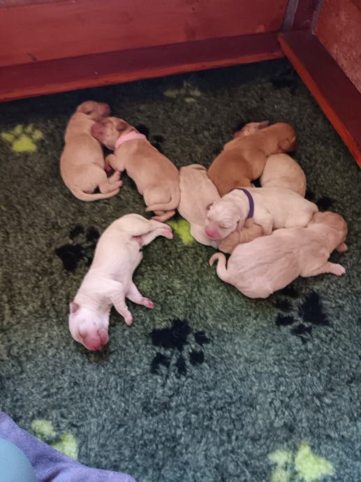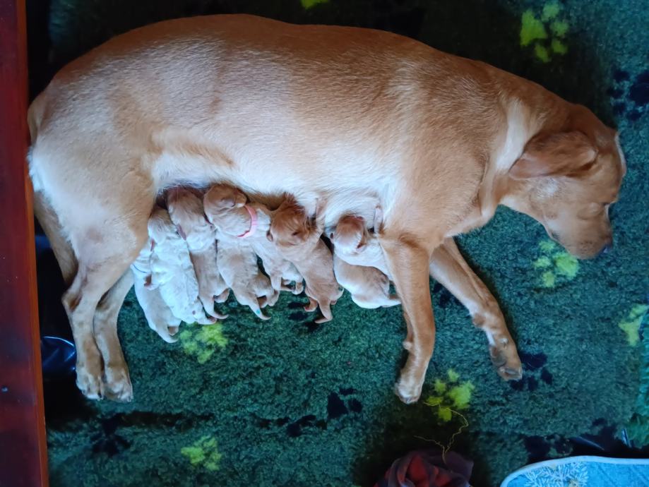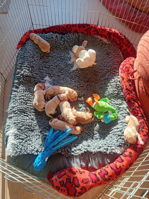 Konec decembra 2024 smo dobili 8 rumenih mladičkov labradorcev (5 samcev in 3 samice). V nov dom bodo lahko odšli konec februarja 2025. Mladički bodo primerni za različne pasje športe, kot tudi prijetni družinski spremljevalci.