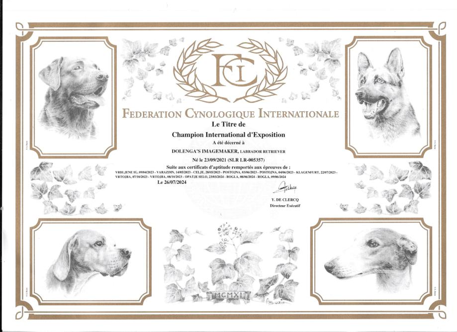 Razstavne dosežke: SLO HOPE, CH J SLO, CH M HR, CH SHOW SLO, Grand CH SLO, CH Show Hr, CH Fed. BiH, Inter J CH, Mednarodni šampion v lepoti, zmagovalec razreda šampion na EDW Slovenija 2024.