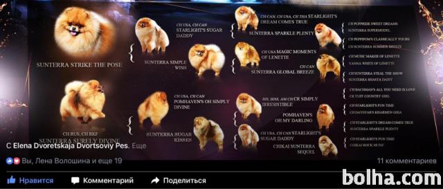 Predniki in oba starša pomeranca, manjše velikosti, ch.mvsi psi pri nas so na razpolago za ogled. Starši so zdravi in na razstavah večkrat nagrajeni.