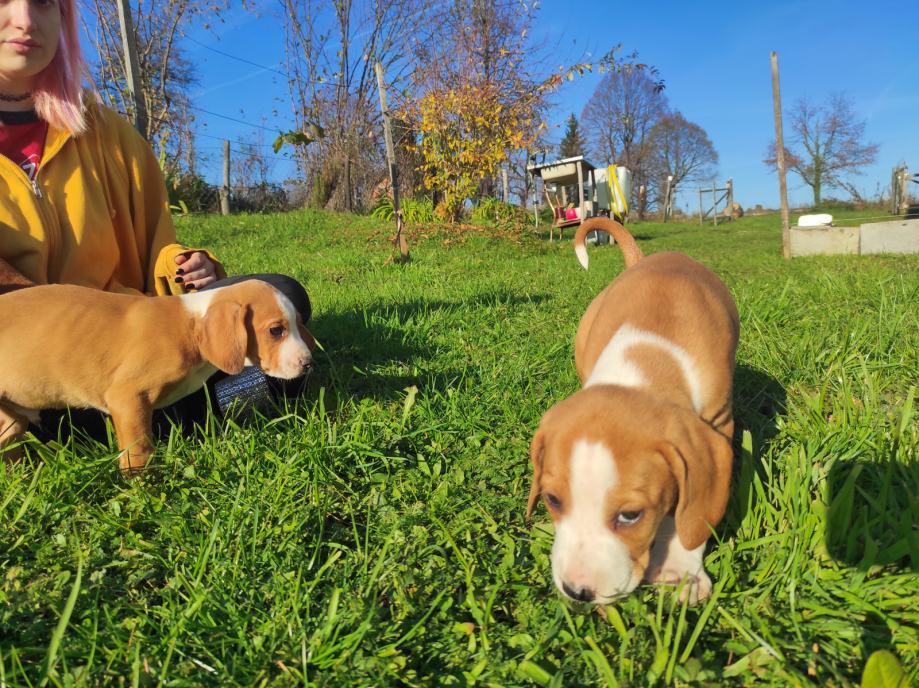 Mladički posavskog goniča. Rodovnik je mednarodni, iz Hrvaške kinološke zveze. Imajo EU potni list. Iz linije nagrajenih psov. Odlično za lastnike, ki obožujejo naravo, sprehode, tek ali lov. So kratkodlaki in zelo čisti. Možno je hraniti v stanovanju. Starši so lovski psi.