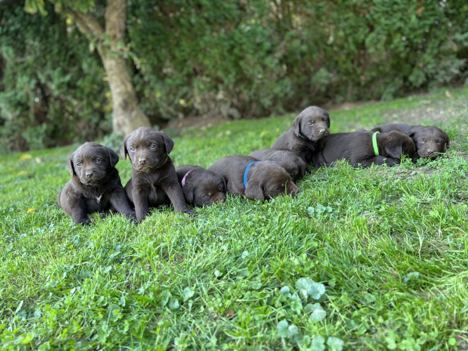 Mladiči čokoladnega labradora z rodovnikom so pripravljeni za novi dom, skotni su 08.09.2022.