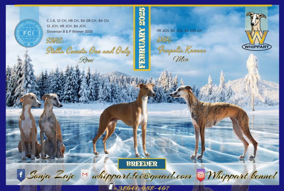 V psarni Whippart imamo rodovniško leglo whippetov.