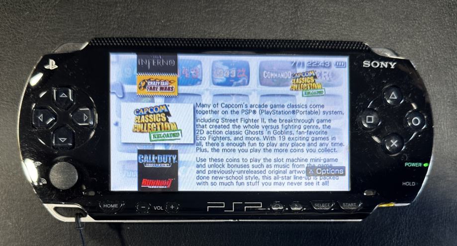 Prodam dobro ohranjen Sony PSP črne barve. Konzoli je priložena spominska kartica 32GB. Priložim tudi polnilec.