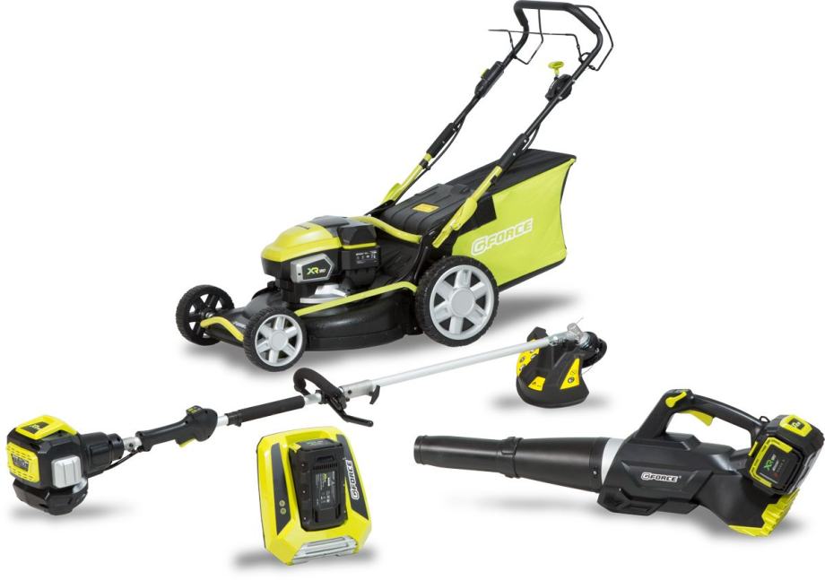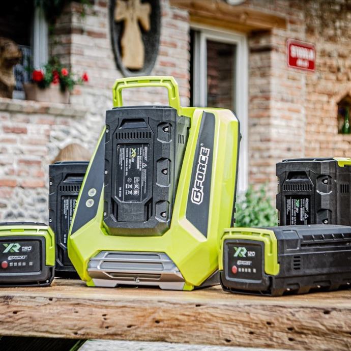 Standardni izdelki na trgu imajo baterije z napetostmi 24, 36, 56 in 60 voltov, vendar G-FORCE v tesnem sodelovanju z Samsung® ima 120-voltni litij-ionski akumulatorski sistem za vrtno orodje in postavlja nove standarde glede zmogljivosti, vzdržljivosti in učinkovitosti. G-FORCE ima elektronski nadzor moči in zato porabijo vedno toliko energije, kolikor je potrebno, zato so tako učinkoviti.