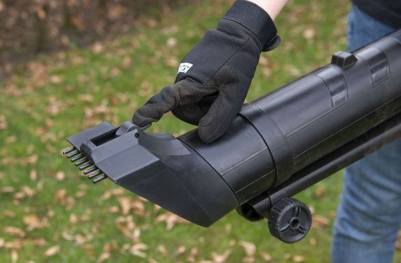 Poleg sesanja lahko ta priročen pomočnik tudi obrne poteg, s katerim lahko odpihnete nered. Na robu šobe je dodatno opremljen z izvlečnimi škrgami. Jekleni rezalni nož v notranjosti sesalnika zdrobi vejice in večje delce tako, da varno dosežejo 45-litrsko zbiralno vrečo.