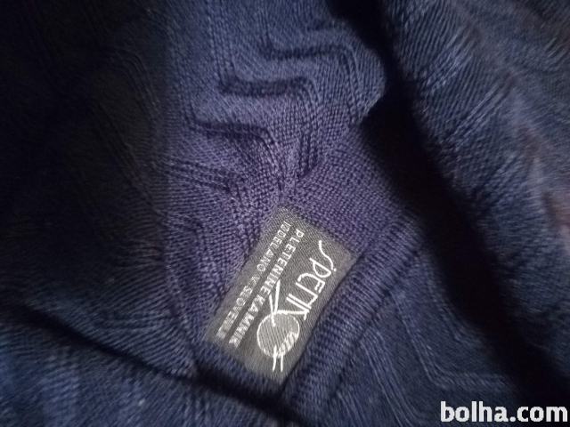 Temnomoder pulover Špenko, M velikost, dolžina 50, prsna širina 45x2 (raztegljiv), rokavi 54 cm.