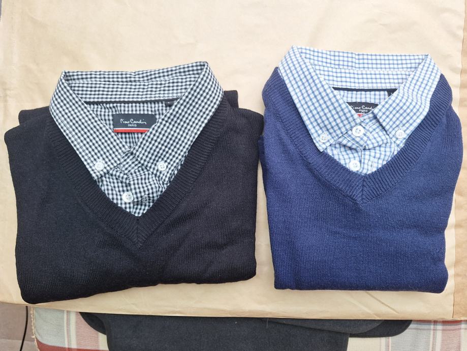 Prodam 2 Pierre Cardin puloverja z imitacijo srajce (samo ovratnik). Oba sta v velikosti L. Praktično nenošeno, nobenih znakov uporabe ali poškodb. Prevzem možen v LJ. Prodam oba v kompletu, navedena cena je za oba skupaj.
