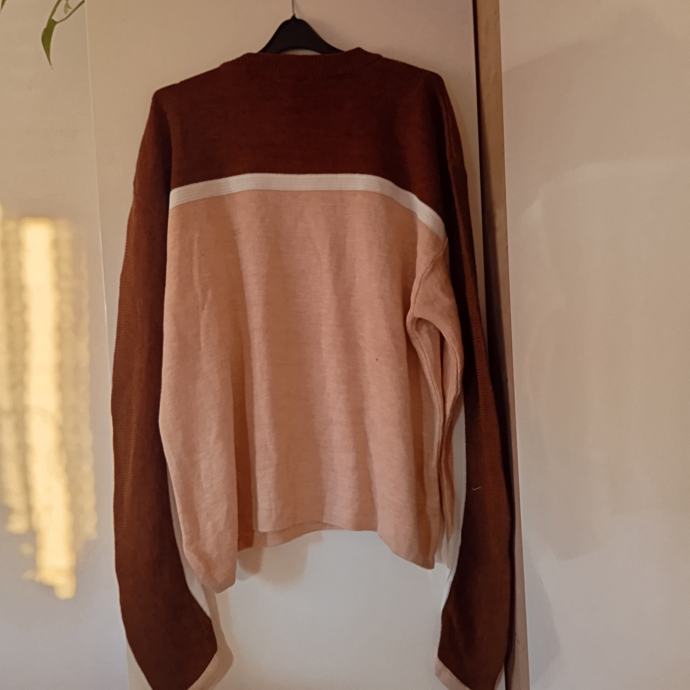 Zelo lepo ohranjenm, pleten, raztegljiv, od ene pazduhe do druge meri 67cm, dolžina je 70cm, dolžina rokava od pazduhe navzdol je 55cm, spodnji rob meri 63cm, ne menjam, ptt ni vključena v ceno