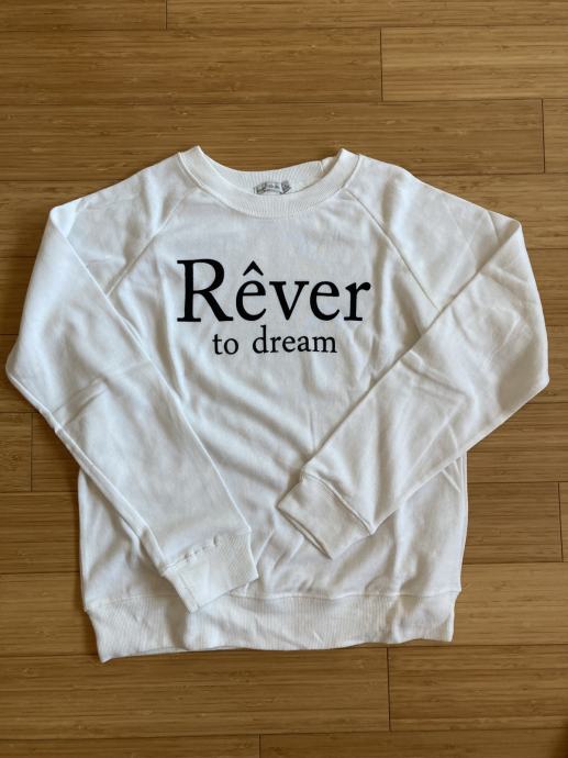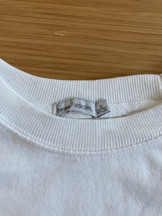 Prodam zelo malo nošen Bershka bel pulover z črnim napisom z dolgimi rokavi primeren za številko S.