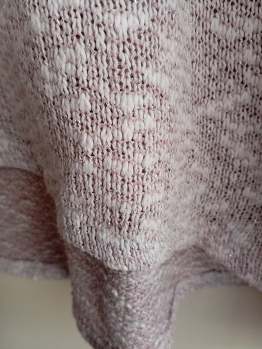 Lepo ohranjen, nežno roza barve, s srebrnimi nitkami, zadaj daljši kot spredaj, ni raztegljiv, od ene pazduhe do druge meri 50cm, dolžina je zadaj 65cm, spredaj 50cm, ne menjam, ptt ni vključena v ceno, orig. vel. je S, primeren je tudi za M